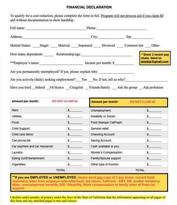 Please complete this form in FULL so we can assess a lower fee for you: